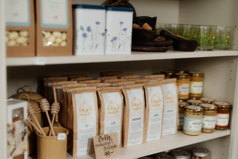 I vår Lilla lada finner du utöver massa blomster en del mathantverk i form av olika sylter, safter, marmelader, chokladtryfflar, lokalproducerad rapsolja.. Mycket spännande saker! Sortimentet byts ut efter säsong men vissa produkter finns på hyllorna året runt.