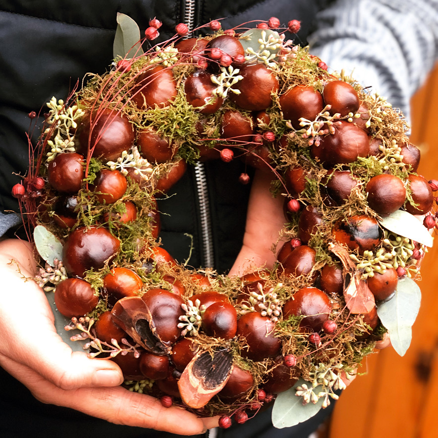 - Använd dig av naturens varma färgskala, bind dig en härlig höstkrans! Why oh why ska vi bara ha en dörrkrans till jul? Få utlopp för din kreativitet och samla in frökapslar & höstlöv, har du ont om det finns det i din egna trädgård kan du alltid unna dig att köpa in lite material hos din lokala blomsterhandel. Bind på en halm eller stålstomme.