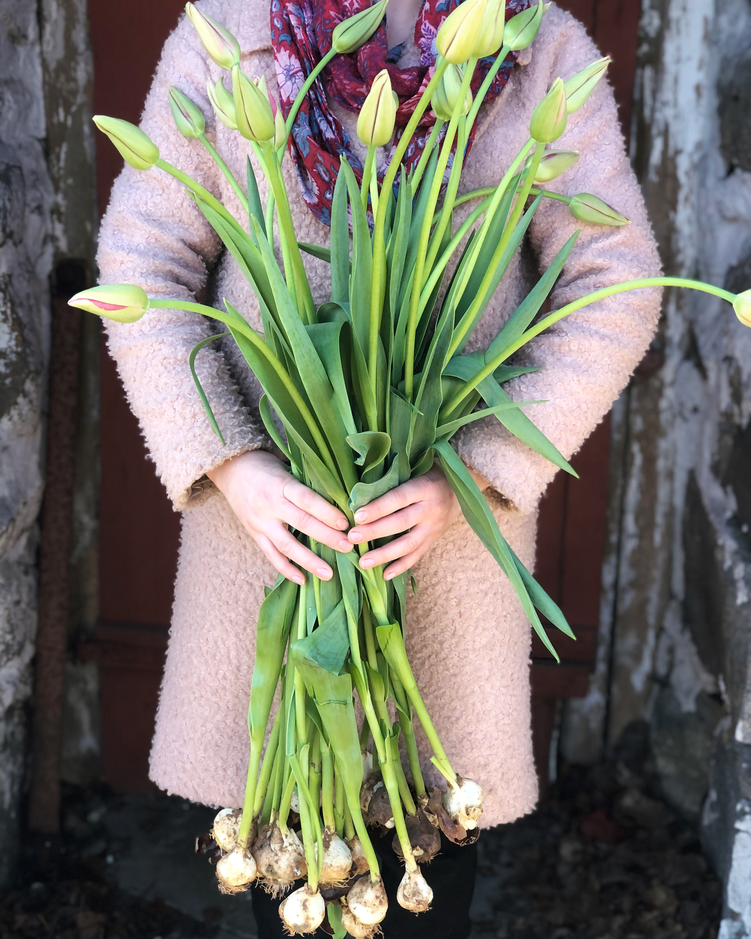 Full av förväntan kommer den ack så nyckfulla våren. Hoppfullt fågelkvitter omger oss och ljuvliga vårlökar söker sig fram i ljuset som sakta återkommer mer och mer. Från de första kämpande snödropparna till de ljuvligt vajande tulpanerna söker vi oss återigen ut i trädgården och naturen. Vi plockar mer än gärna även in den, för än är graderna inte oss till lags för sena kvällar utomhus. Kvistar, grenar och lökar är ett härligt och vårigt inslag i hemmet.