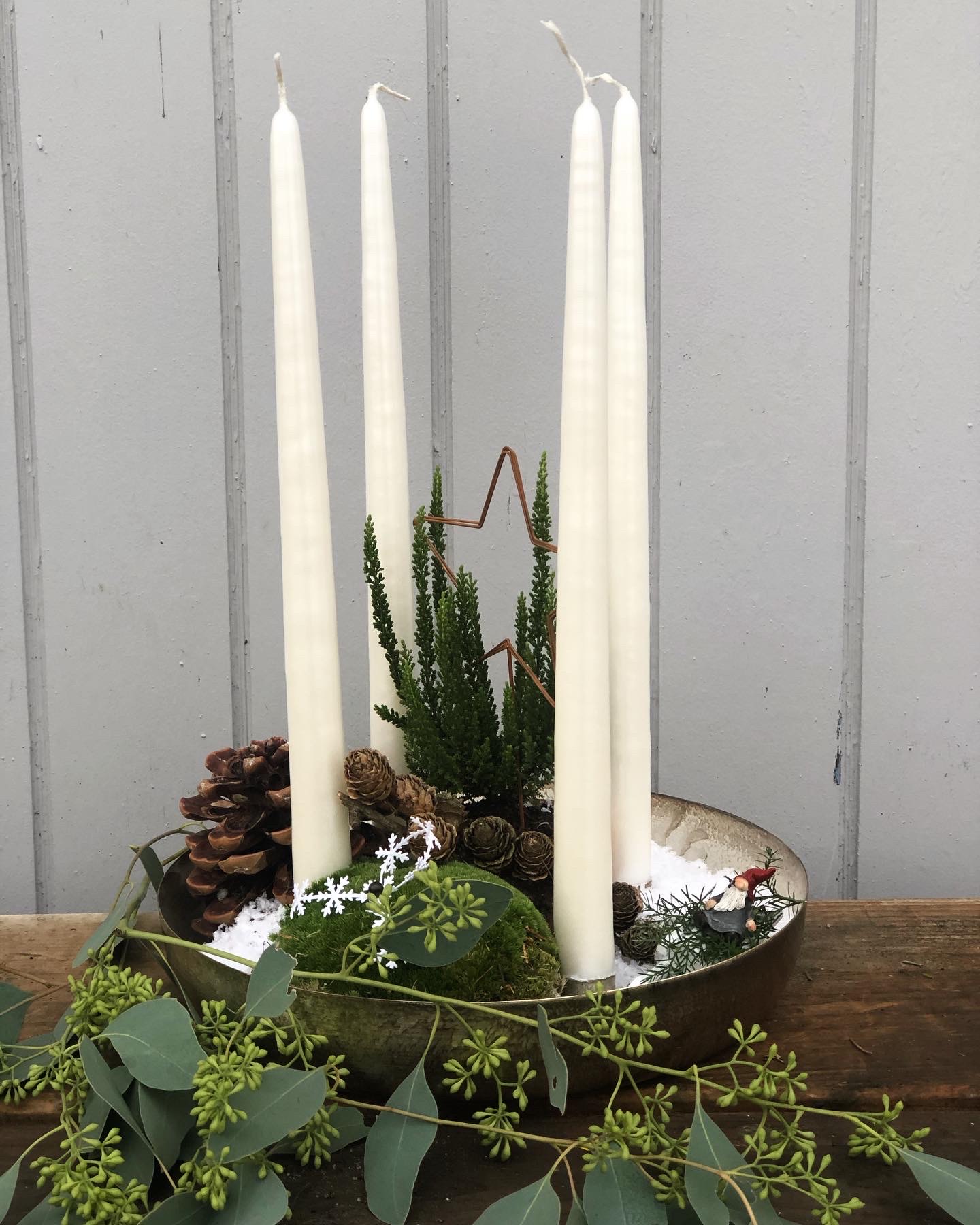 - Vintern bjuder in oss till en hel uppsjö av pyssel och blomsterfix. Inför 1:a advent vill många fixa vinterfint både på trappen och i hemmet. Man kan lätt bli vilsen och vilja pyssla i varje hörn. Vill man göra det enkelt för sig är mängd av samma bra här, sätt ett helt gäng med hyacinter i ett och samma stort kärl på ett ställe istället för på 10 olika. Då har du ett vackert ställe att vila ögonen på.